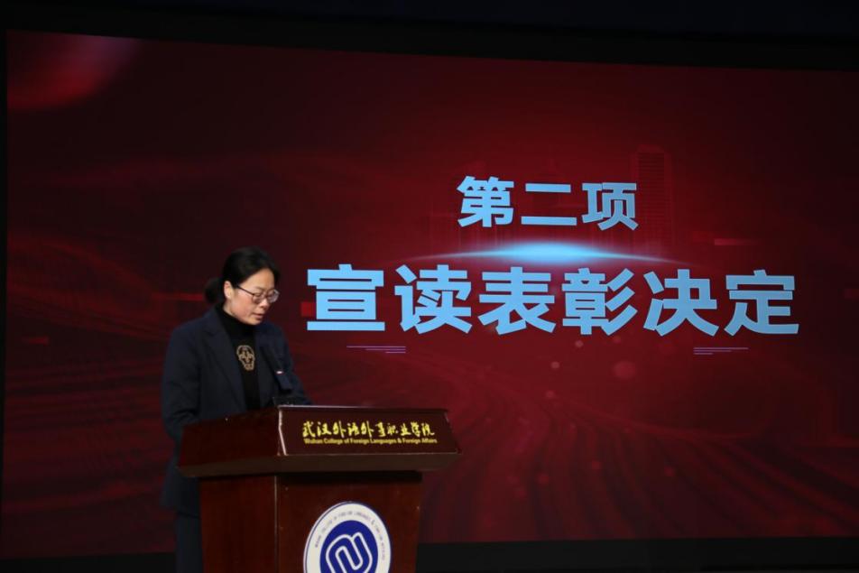 大会在庄严的中华人民共和国国歌声中拉开帷幕。学生工作部部长施卫荣宣读表彰决定,对过去一学年在学风建设、社会实践、科技创新、志愿服务等领域表现突出的集体与个人予以表彰。她指出,全体学子以青春之姿践行初心使命,用汗水浇灌成长硕果,彰显了外院学子向阳生长的奋进风采,希望受表彰者珍惜荣誉、再接再厉,全体同学以榜样为镜、奋勇争先。