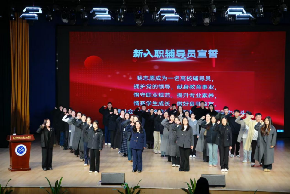 新入职辅导员集体宣誓环节庄严而神圣。在领誓人郭硕洋的带领下,38名新入职辅导员举起右拳,庄严宣誓拥护党的领导、献身教育事业、情系学生成长,誓言铿锵有力,彰显了新时代高校辅导员立德树人的坚定信念与责任担当。