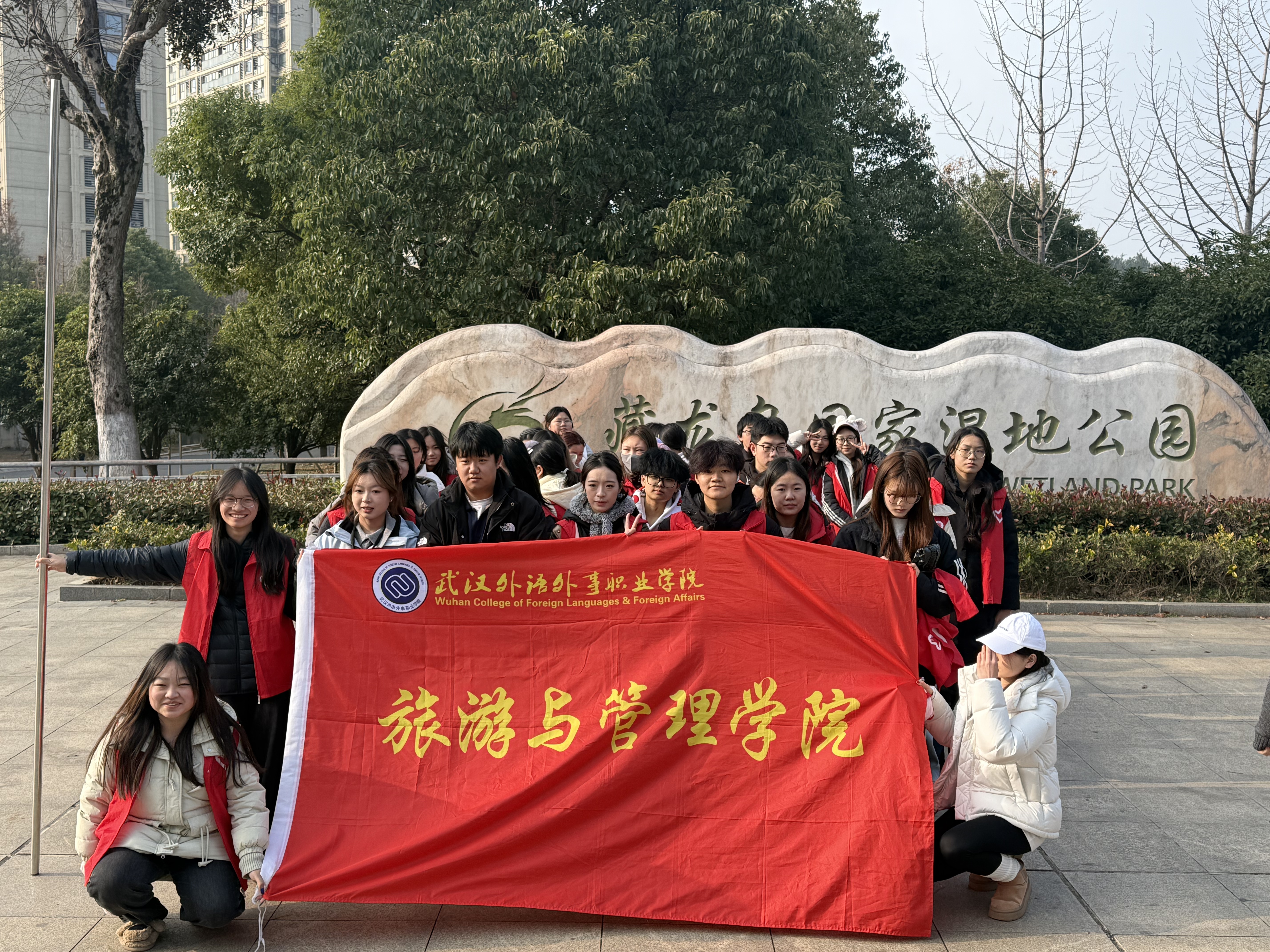 活动中,各学院结合特色精准发力:财经与商贸学院组织志愿者赴养老社区,开展“环境焕新+环保科普”志愿服务,既清洁园区又向长者普及分类知识;外语与艺术学院聚焦湿地生态保护,组织学生走进藏龙岛国家湿地公园开展调研与宣传、生态保护;信息技术学院开展湖泊保护行动,以实际行动守护水域生态;工程技术学院手持清洁工具参与藏龙岛国家湿地公园园区环境整治;医疗与护理学院、旅游与管理学院让学子化身环保志愿者,在藏龙岛国家湿地公园开展垃圾清理,以实地实践的方式参与湿地生态保护。