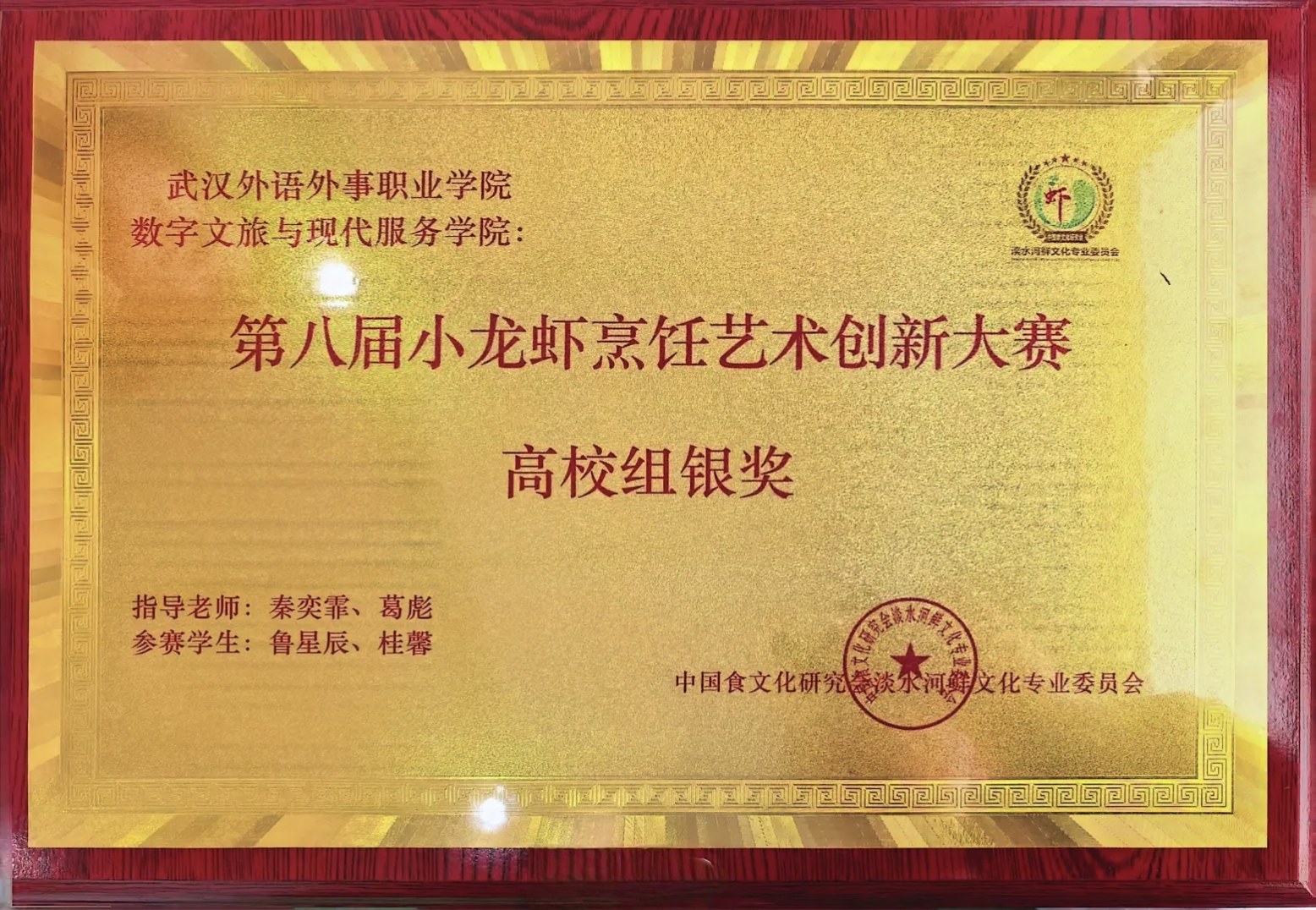 本次大赛汇聚了全国烹饪高手与行业精英,高校组比赛尤为激烈,选手需在规定时间内完成创意菜品烹制,对刀工、火候、口味创新及造型设计均提出极高要求。鲁星辰、桂馨两位同学在专业教师悉心指导下,将课堂所学与实践操作紧密结合,最终凭借一道融合传统卤味技法与现代审美的小龙虾创新菜品征服评委,摘得银奖。两位获奖同学也感叹,此次经历让他们深刻感受到专业魅力与行业活力,未来将继续传承匠心精神,在烹饪艺术道路上不断突破。