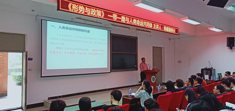 两位院领导的讲座内容覆盖广,图片资料详实,引用数据准确,案例分析透彻,逻辑层次清晰,讲述深入浅出,让在场的师生对“一带一路与人类命运共同体”、“经济全球化的退与进”的意义和内容有了清晰的认识,给在座师生上了一堂生动的思想政治课和形势与政策课,在激发师生的家国情怀、理想信念、艰苦奋斗、自强不息等方面起到了很好的引领作用,同时也激励师生做到“以德配位”,好好学习毛泽东思想等伟人的重要理论,在学业上也要奋勇向前,把个人对美好未来的追求自觉融入到建设中国特色社会主义共同理想之中,为实现中华民族伟大复兴“中国梦”接续奋斗。