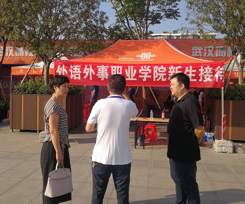 为加强在新生中反网络诈骗的宣传,帮助新生了解大学生落户政策,东湖生态旅游风景区公安分局今年专门在学院设立迎新点,还抽调警力协助学院做好迎新期间的交通疏导、治安巡防等工作。在东湖生态旅游风景区公安分局与后勤保卫处迎新点,院长陈建勋、党委书记王军与分局负责人交流迎新情况,对东湖风景区公安分局在迎新期间的大力支持表示感谢。