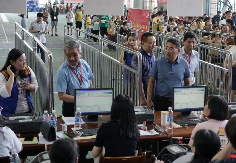 院领导一行在看望各迎新点时对各单位在迎新工作中采取的方法和举措表示赞许,对迎新师生们的辛勤工作表示感谢,并希望负责迎接新生的老师和学生志愿者以文明礼貌、热情周到、安全有序的服务做好各项工作。