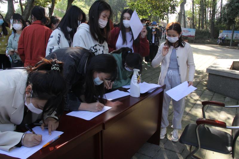 我院学子到达指定接种医院后,井然有序进行测温