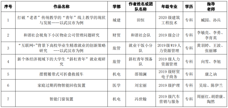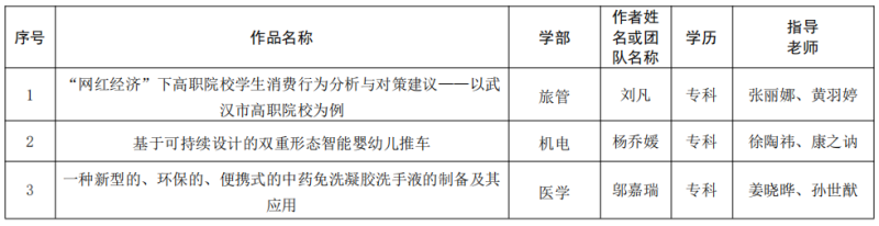 湖北省第十三届“挑战杯·中国银行”大学生课外学术科技作品竞赛拟授三等奖名单