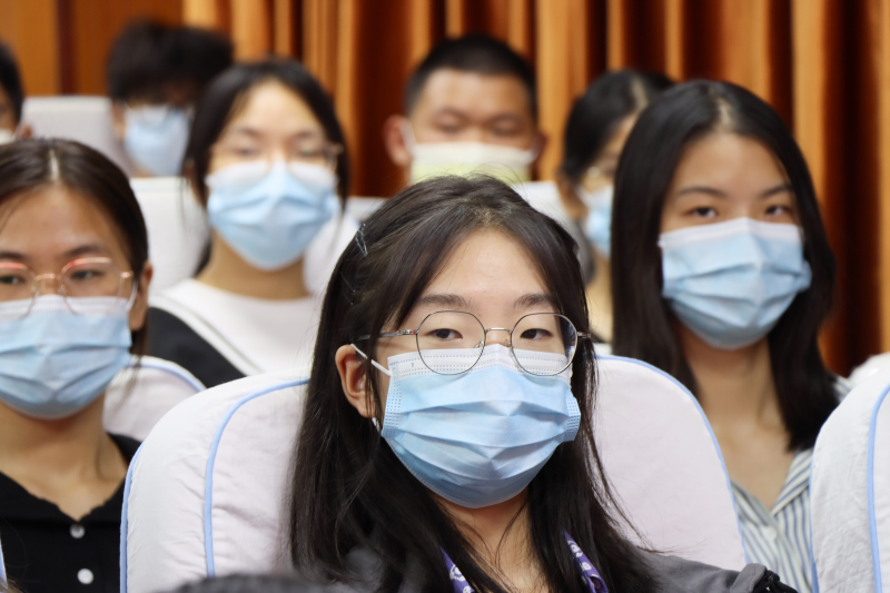 本次开学典礼暨开学第一课采用“线下主会场+线上分会场”双模式,7400余名新生分别在南一(2号)报告厅主会场及自习室分会场观礼,并同上第一课。