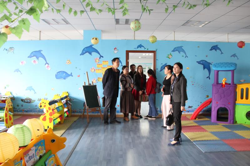 汇报结束后,教务处处长张欣带领专家组一行前往学前教育实训中心进行实地考察。