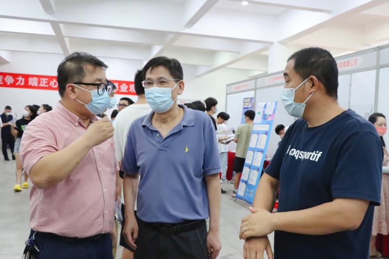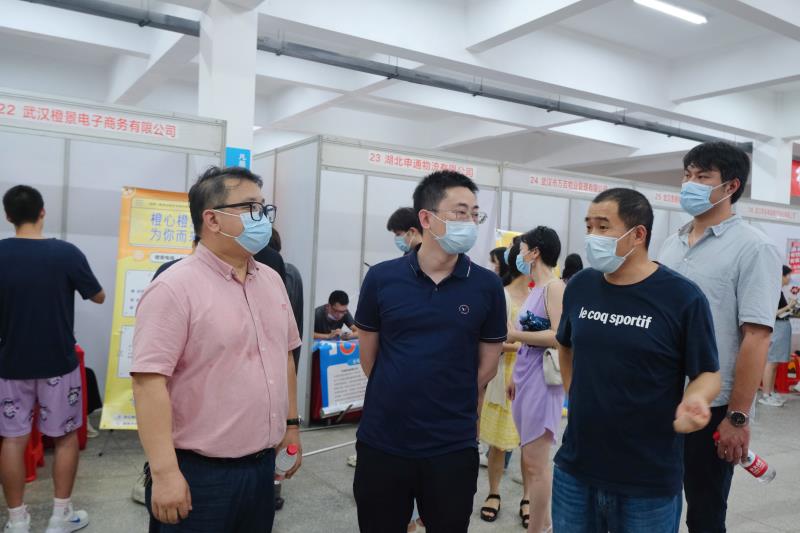 学院在严格做好疫情防控工作的基础上,抢抓毕业生离校前的时机,全方位开展拓岗促就业专项行动,着力搭建用人单位与毕业生沟通交流平台,全力为2022届毕业生高质量就业保驾护航。湖北省就业指导中心就业指导部部长邵志勇、我院党委书记王军、党委副书记肖军到现场查看情况,为学生答疑解惑。王军一行沿着招聘展位边走边看,不时驻足,与企业负责人深入交谈,深度了解用人单位对岗位应聘者的知识、能力和素质要求,现场与学生亲切交谈,鼓励学生抢抓机遇,积极应聘。