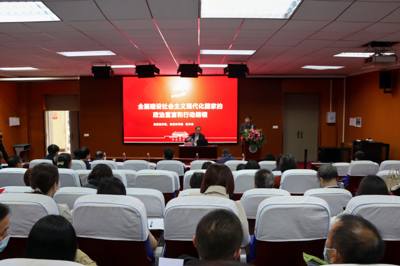 新闻网讯(记者袁晚露)11月16日下午,学习贯彻党的二十大精神省委宣讲团报告会在我院南一(2)号报告厅举行。省委宣讲团成员、省委讲师团主任高天琼以《全面建设社会主义现代化国家的政治宣言和行动纲领》为题作宣讲报告。我院党委书记王军主持会议。