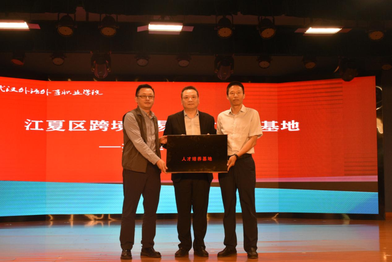 开幕式后,江夏区区校合作发展促进中心、江夏区商务局为我院跨境贸易人才培养基地授牌。