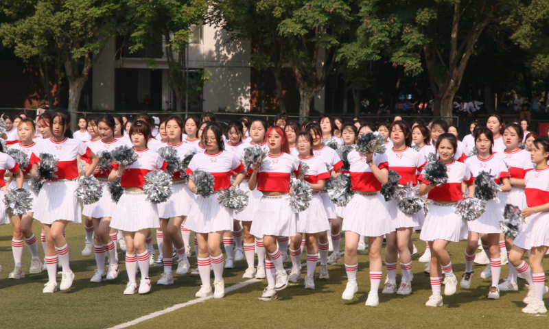 随后,身着统一服装的红旗方阵、太极方阵、啦啦队方阵呈现了极富特色和精彩绝伦的表演,红旗飒飒整齐划一、太极拳如行云流水、健身操轻盈律动,为全院师生带来了一场异彩纷呈的视觉盛宴,将整个操场气氛不断推向高潮,操场上不断传来观众的欢呼声、喝彩声。