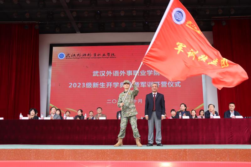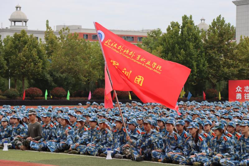 武汉警备区委派军训教官、军训团团长余文文作军训动员,院长陈建勋为军训团授军训旗,确保学生学有所得,训有所获。