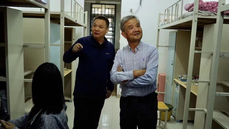 在学生宿舍,陈建勋一行了解学生入住情况,嘱咐辅导员和宿舍管理员合力做好新生入学教育及管理工作。勉励学子们要勤奋好学、刻苦努力,在大学校园里筑梦圆梦。