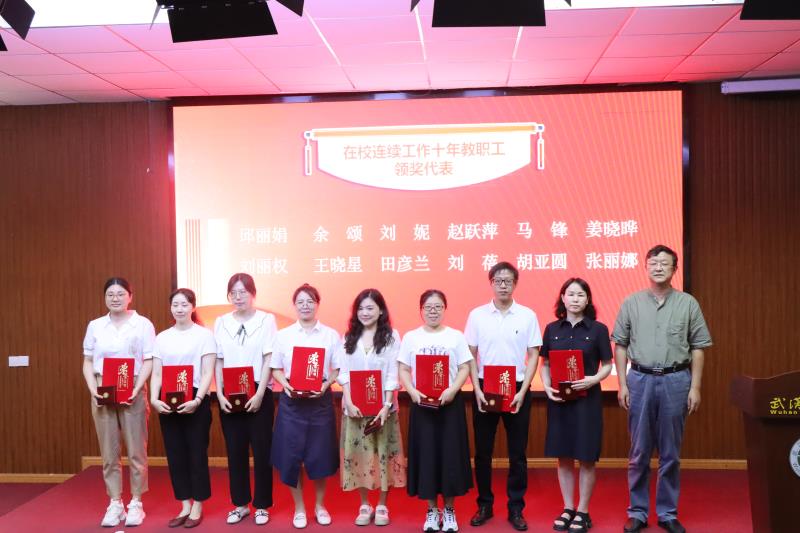 人力资源总监刘汛汛宣读《关于表彰“落雁好老师”“优秀教育工作者”“在校连续工作十年以上教职员工”的决定》。学院授予曹树斌等18人“落雁好老师”称号,授予徐慧娴等18人“优秀教育工作者”称号,向在校连续工作十年以上的邱丽娟等27名在岗教职工颁发荣誉证书和纪念章。