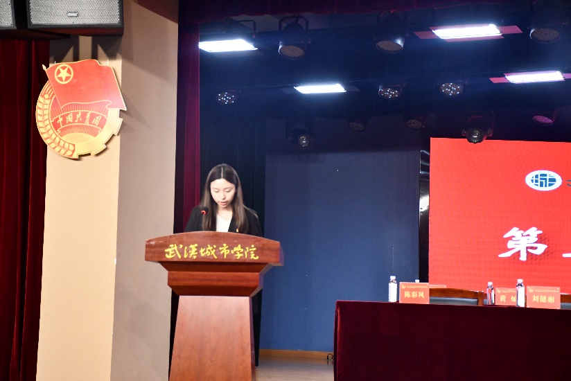团委办公室主任、大会秘书长卢诗琪宣读关于通过学生会工作报告的决议,同时对学生会今后的工作提出了意见,作出了工作部署,希望学生会继续回应党的嘱托,围绕学习中心工作,助推学院改革,服务学院广大学子。