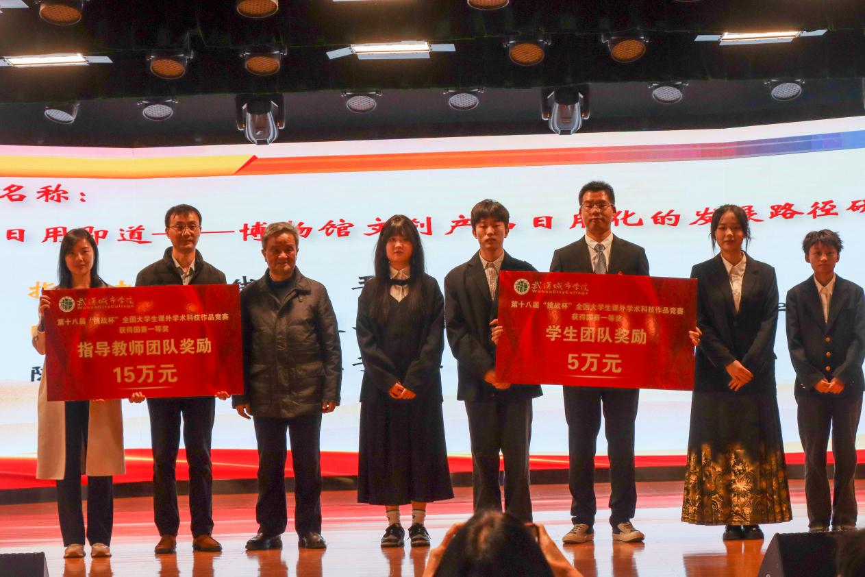 院领导为第十八届“挑战杯”竞赛获国赛、省赛奖项的团队颁发证书。