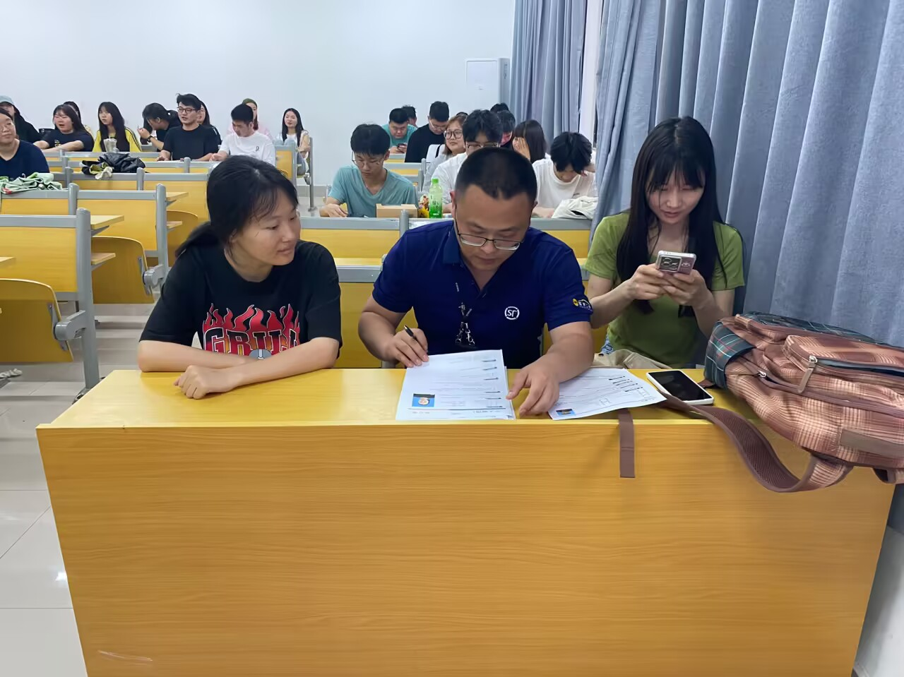 在互动交流环节,学生们热情高涨,纷纷就自己关心的问题向企业招聘人员提问,现场气氛热烈。“入职后公司会提供哪些培训?”“岗位的职业发展路径是怎样的?”“薪资福利待遇具体包括哪些方面?” 面对学生们的提问,招聘负责人一一进行了耐心细致的解答,并结合自身的职业经历,分享了在顺丰的成长感悟,鼓励学生们积极投身物流行业,在实践中锻炼自己,实现个人价值。