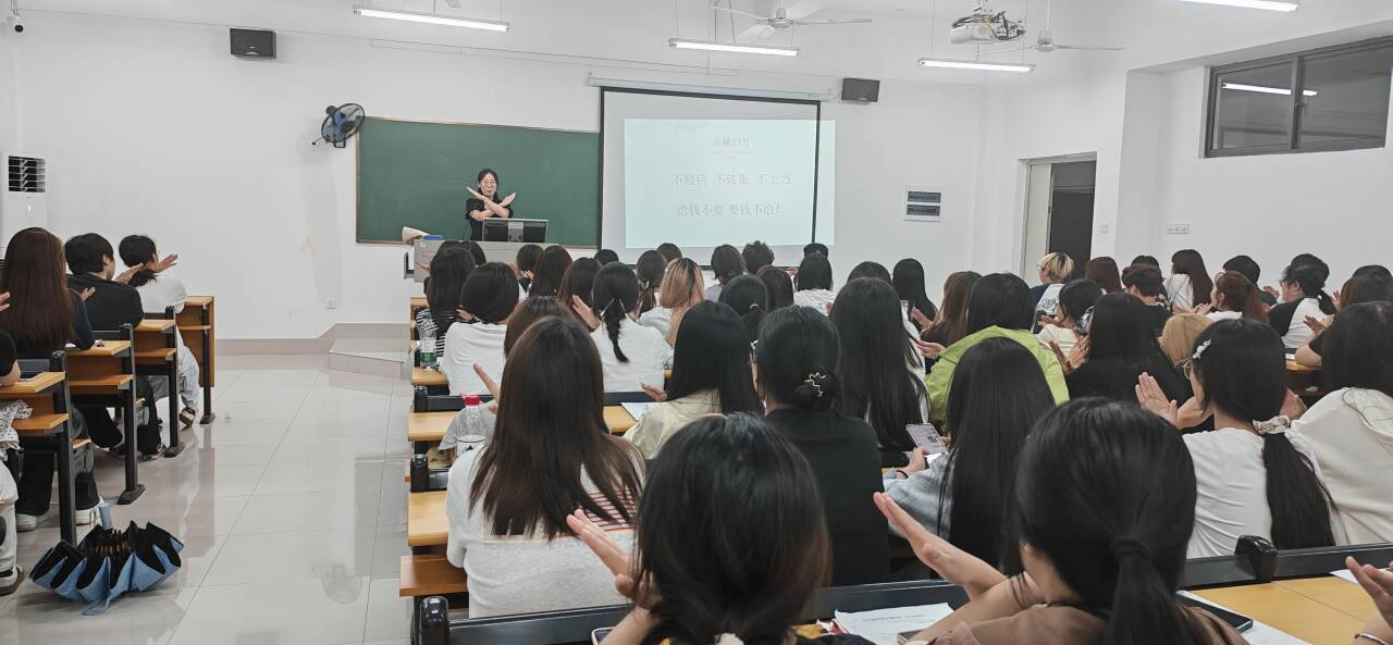 9月14日,我校财经与商贸学院针对2025级新生开展了一场别开生面的入学安全教育主题班会,主题为“全班反诈,骗子退散!”。本次活动由25级辅导员汪彪、张佳玉、邱泽林三位老师共同策划组织,通过趣味互动与沉浸式体验,帮助新生提升防诈骗意识,同时彰显学院对学生安全工作的高度重视。