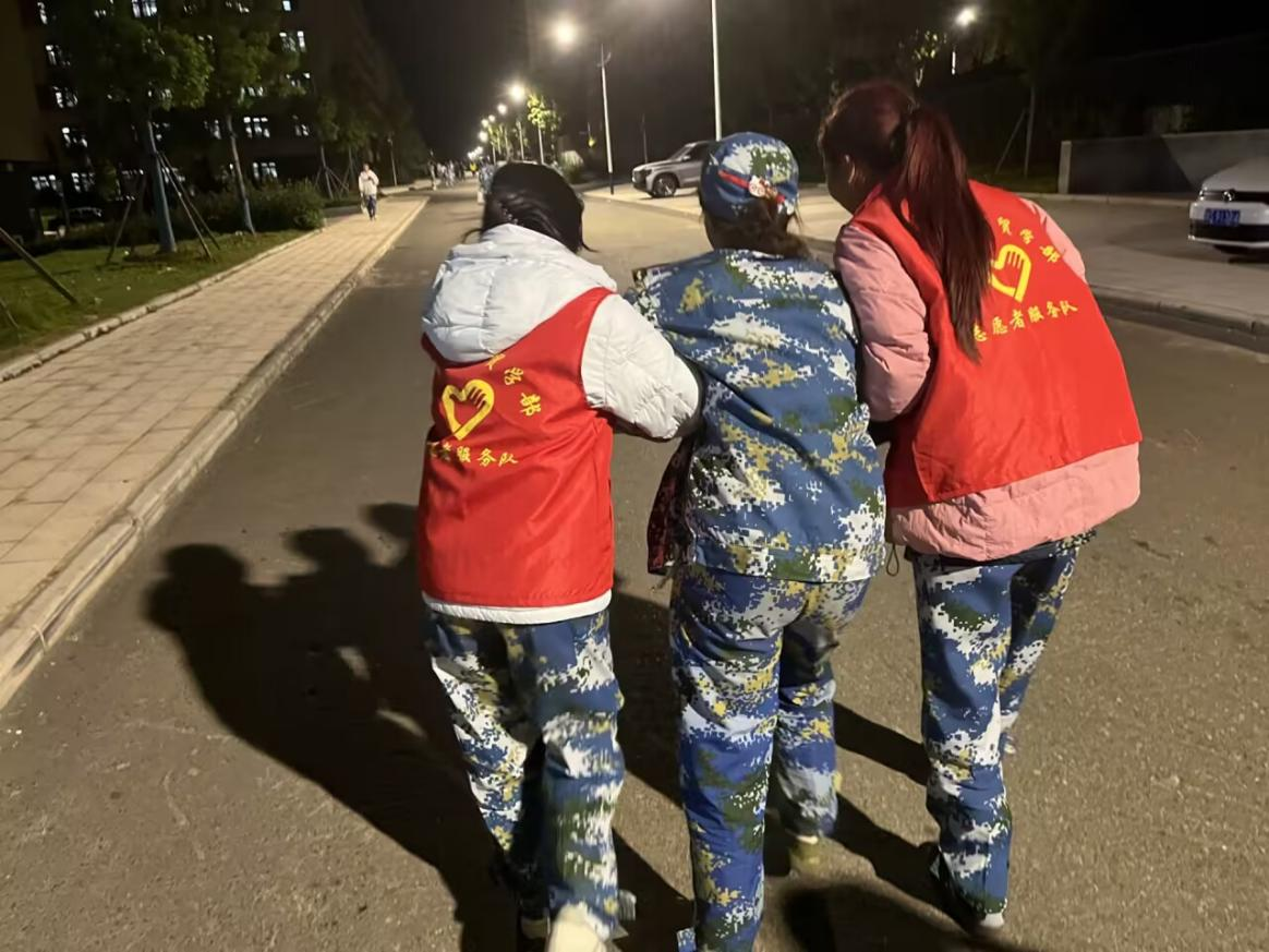 一路上,她们关切地询问同学的状况,轻声细语地和同学交流,缓解同学的疲惫。那搀扶的身影,在夜晚的校园里,成为一道温暖的风景线。她们用自己的热心与善良,让刚刚结束军训的同学感受到了来自学院大家庭的温暖。