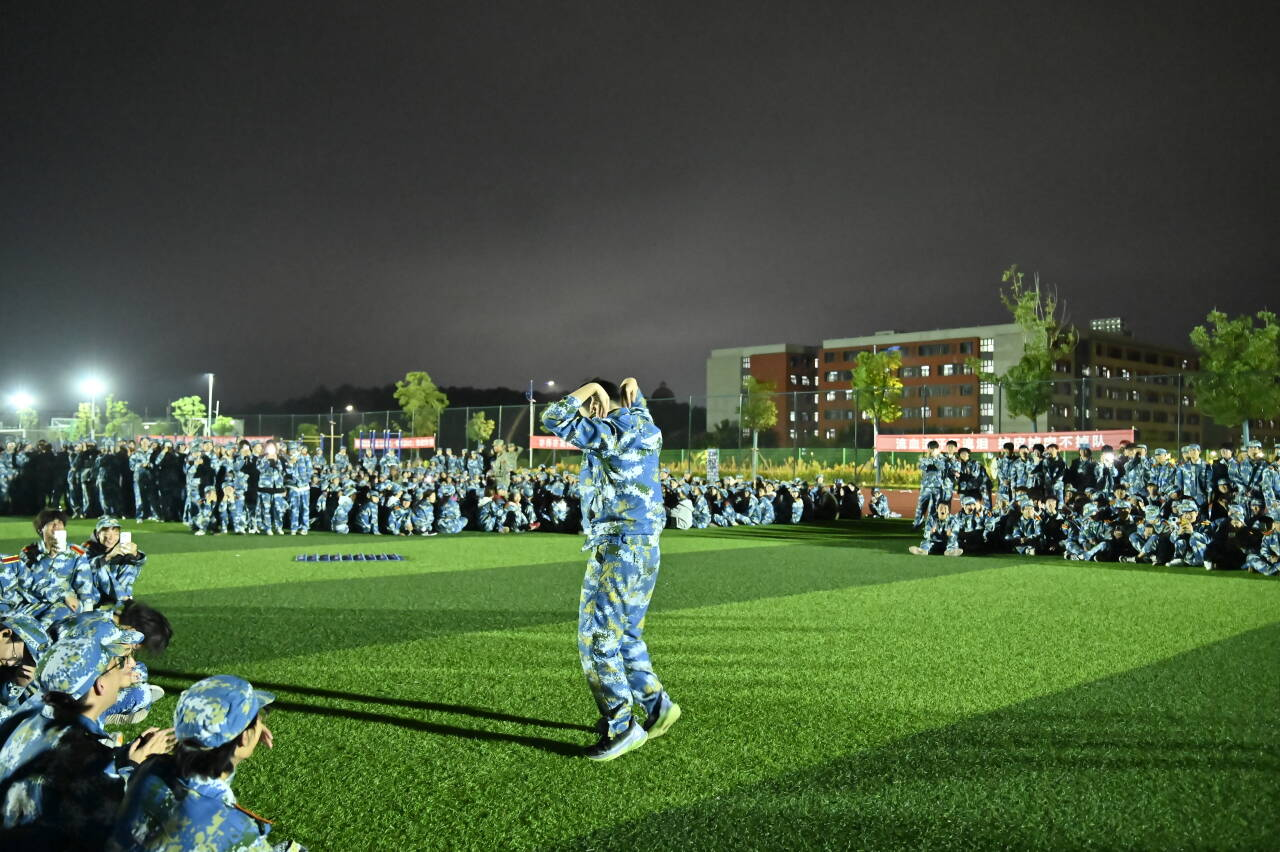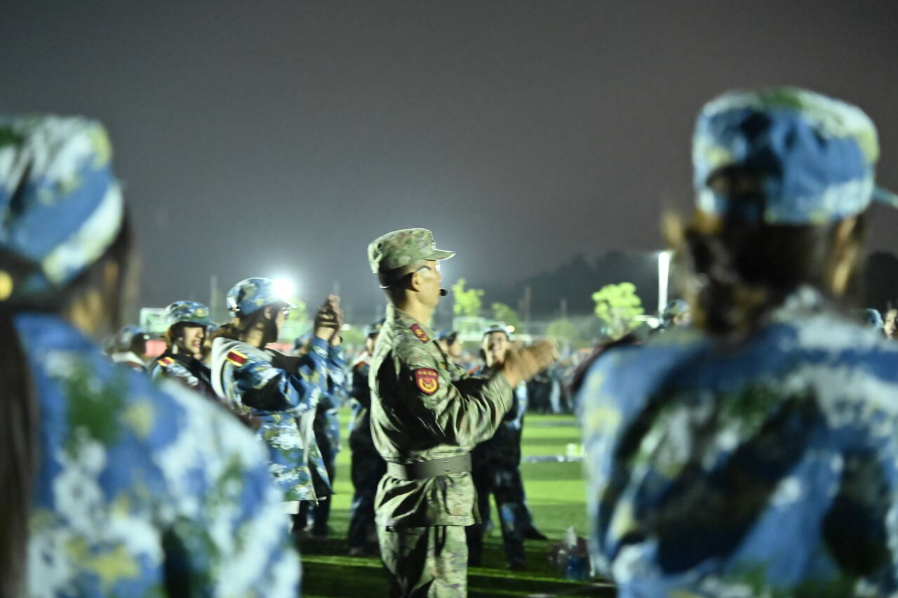 教官们也积极参与其中,他们或是指挥大家齐唱军歌,激昂的旋律在夜空中回荡,培养了同学们的集体荣誉感与爱国情怀;或是与同学们交流互动,引导大家在军训中锤炼意志,增强体质,将体育精神与德育教育相融合。