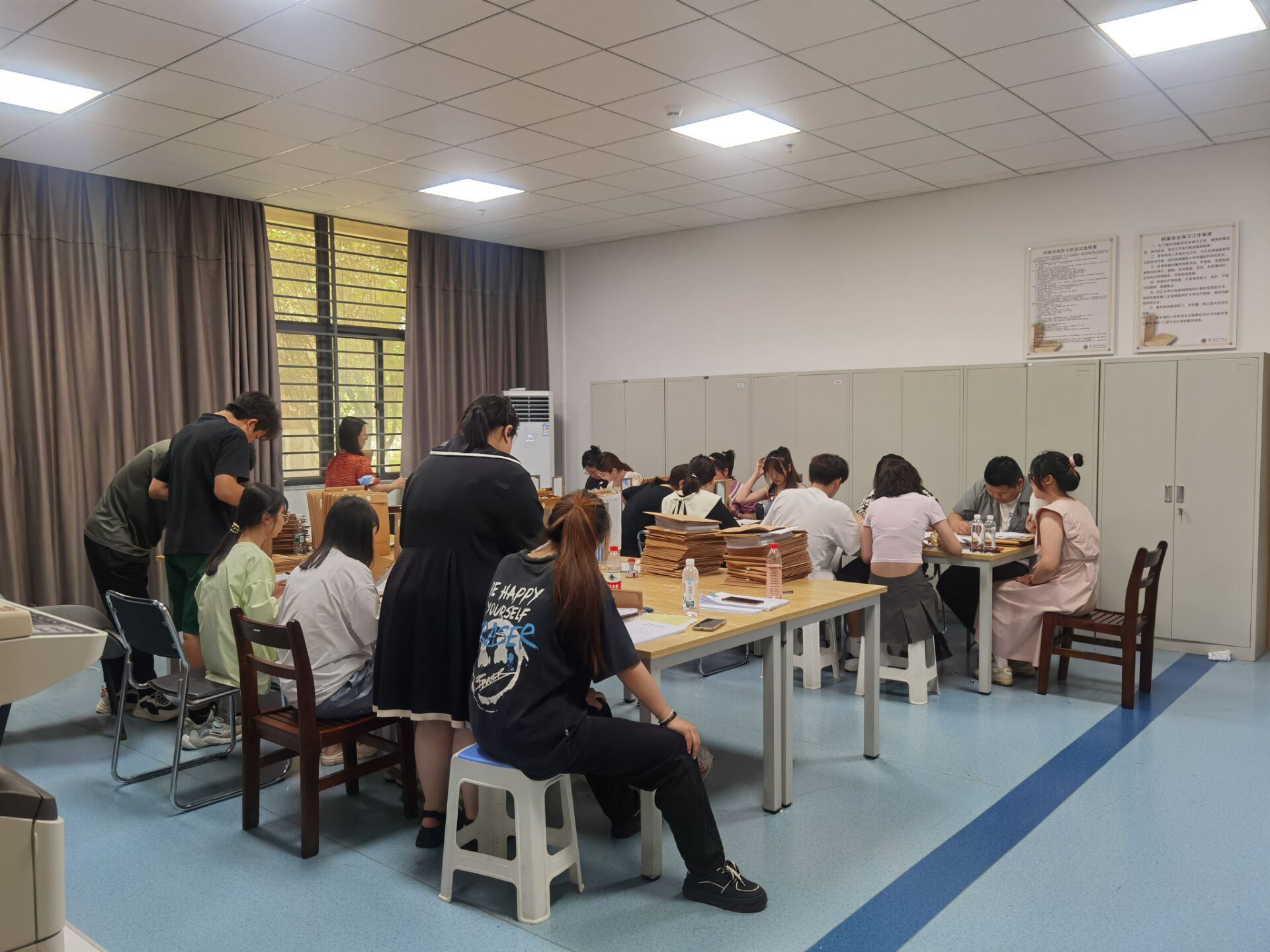 为保证2023届毕业生档案转递工作的顺利进行,档案馆5月26日参与毕业生就业工作培训会并作专项汇报,提前为档案转递工作打好基础,在6月27日与学院毕业生办公室老师共同参加省毕办组织的全省高校学生档案转递工作会议,全面学习国家最新政策要求。由于要赶在7月份发出第一批学生档案,为学生暑期就业、升学等提供档案保障,可谓是时间紧、任务重,而档案馆全体老师都是党员,本着党员先锋模范带头作用的工作作风,加班加点,不计个人得失,完成学生各项档案材料的整理、装袋、核对、封条、数据录入、分类等,并且按照就业办提供的学生档案转递地址,填写每一位学生的《档案转递单》并打印出来,将后两联随学生档案寄出,最终赶在7月中旬完成第一批学生档案的转递工作,下半年又接连完成第二批、第三批等若干批学生档案转递工作,最终顺利完成2023届学生档案的转递工作。