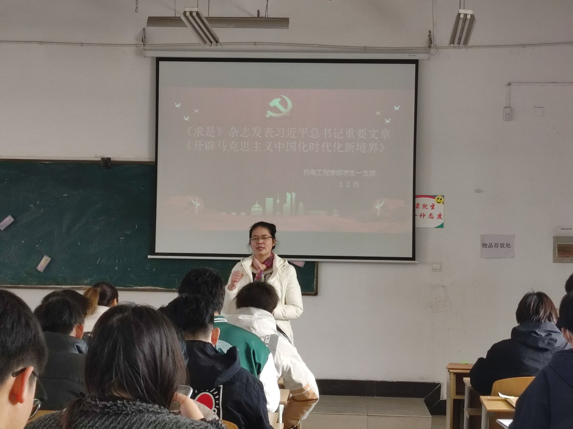 2023年12月1日12:10,由机电工程学部学生第一党支部组织的学习习近平总书记重要文章《开辟马克思主义中国化时代化新境界》在4405教室举行,支部全体党员参加。