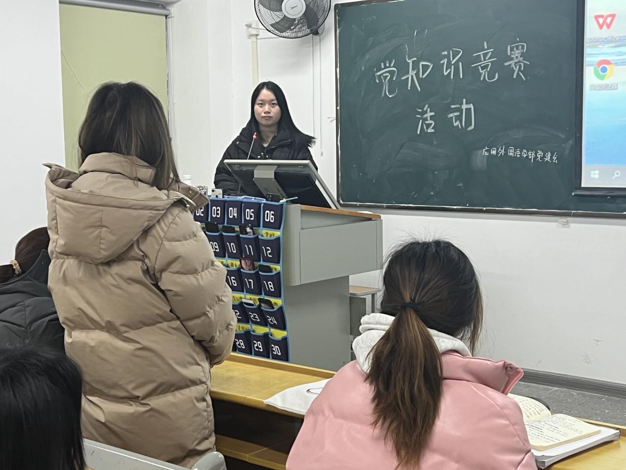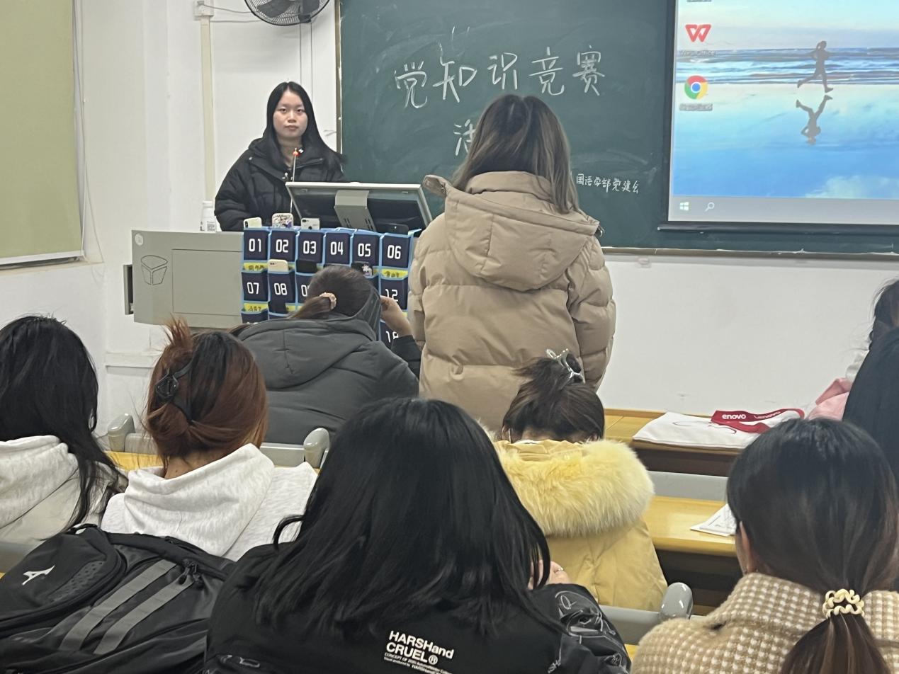 (应用外国语学部党建讯 撰稿人:胡帆)2023年12月6日晚19:30分在藏龙岛校区J331教室举办了党知识竞赛活动,此次活动得到了广大同学的热情响应和积极参与。本次竞赛由藏龙岛校区党建会全体成员参加,旨在增强公众对党的历史、理论和政策的了解,提升党的影响力和凝聚力。
