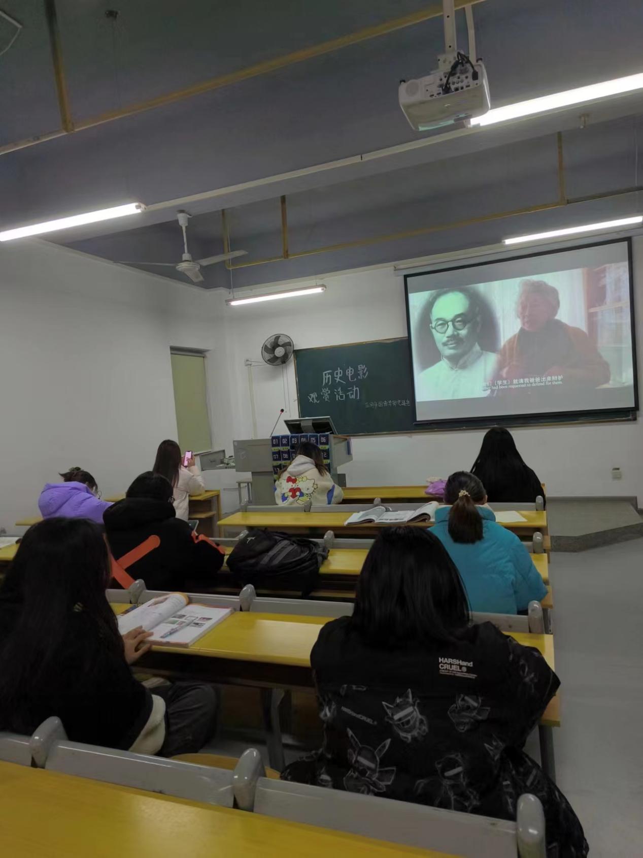 (应用外国语学部党建讯 撰稿人:胡帆)2023年12月4日,应用外国语学部党建会在藏龙岛校区J331教室组织了一场精彩绝伦的历史电影观赏活动,23级德语(护理)1、2班全体参与。旨在通过影像的方式,让同学们更加直观地了解和感受我国深厚的历史文化,增强大家的爱国情怀。