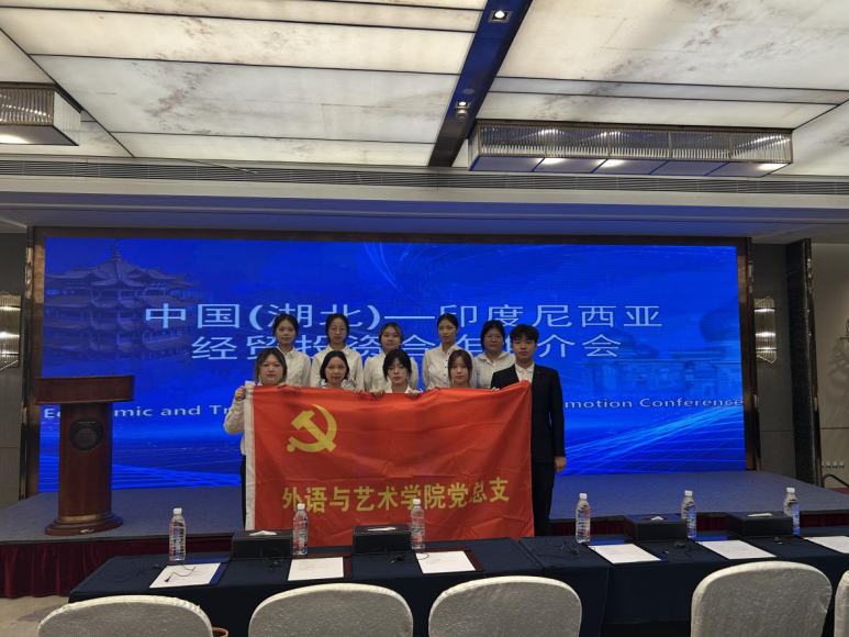 (通讯员 刘妮)2025年10月14日,中国-印度尼西亚经贸投资推介会在武汉成功举行。此次活动不仅是一次推动“一带一路”倡议与《区域全面经济伙伴关系协定》(RCEP)深度对接的经贸盛会,更成为展现新时代高校党建引领育人成果、激发青年学子使命担当的生动实践。外语与艺术学院商务英语专业的十名学生入党积极分子,以志愿者身份全程参与,以其专业素养和奉献精神,成为活动中一道亮丽的风景线。