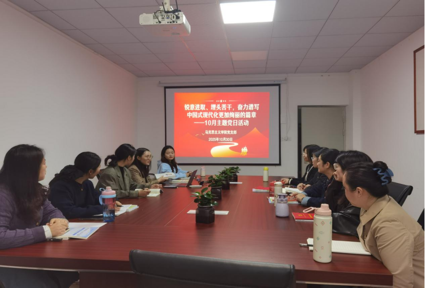 (通讯员:肖丽)金秋十月,硕果盈枝。为深入学习贯彻党的最新理论成果,切实把思想和行动统一到党中央决策部署上来,10 月 30 日,马克思主义学院党支部在行政楼 514 会议室开展了以“锐意进取、埋头苦干,奋力谱写中国式现代化更加绚丽的篇章” 为主题的党日活动。全体党员齐聚一堂,在学思践悟中坚定信仰根基,在纪律锤炼中凝聚奋进力量。