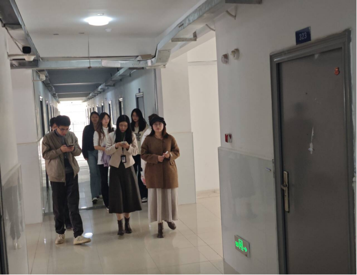 活动前期,学院精心部署、明确分工,制定了清晰的活动方案与流程。中午 12:10,全体参与师生准时在 7 栋宿舍门口集合,伴随着相机快门声,一张充满凝聚力的活动大合影定格下师生同心的瞬间,也正式拉开了本次联合查寝活动的序幕。