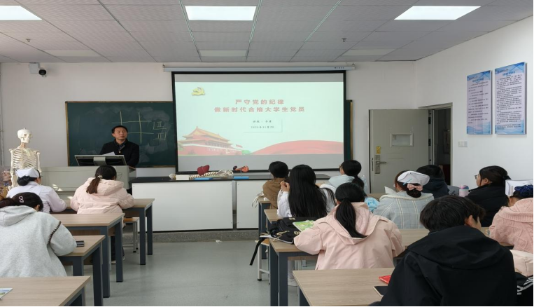 (通讯员 马资浚)为筑牢大学生入党积极分子的纪律意识与党性根基,引导青年入党积极分子以严明作风践行初心使命,2025年11月20日,医疗与护理学院在综合楼J336实训室开展“严守党的纪律 做新时代合格大学生党员”专题党课,本次党课由李勇书记主讲,医疗与护理学院第60期入党积极分子参与学习。