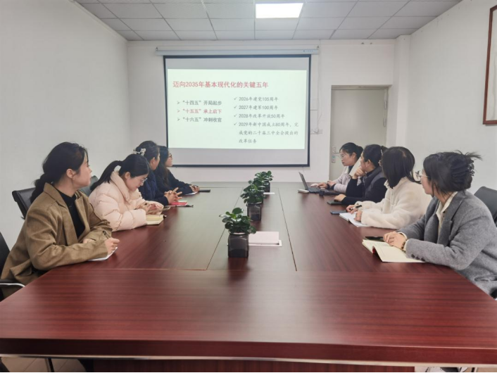 (马克思主义学院 通讯员 王会娟)2025年11月27日中午12:30,我院党支部组织党员教师们在办公楼514办公室深入学习领会党的二十届四中全会精神,重点围绕“十五五”时期的历史方位、总体部署与战略任务进行了深入研讨。会议由支部宣传委员王会娟老师主持。