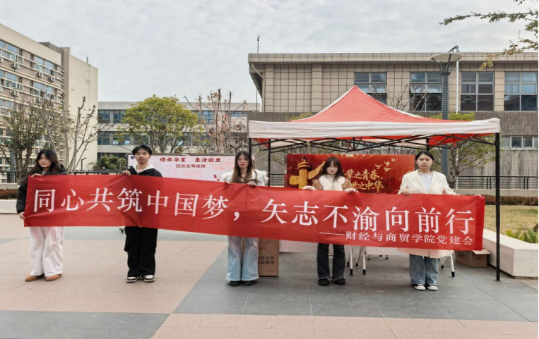 为深入学习贯彻红色精神,厚植青年学生爱国爱党情怀,近日,财经与商贸学院党建会在校内广场举办以“同心共筑中国梦,矢志不渝向前行”为主题的红色精神宣传活动。本次活动以沉浸式互动、趣味化体验的形式,将红色文化与青年生活紧密结合,成为校园里一道亮眼的红色风景线。