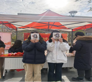 活动现场的文创领取区也排起了长队,党建会准备的印有红色标语的明信片、卡通版革命先烈形象的徽章等文创产品,深受学生喜爱。不少学生领到文创后,纷纷与红色展板、主题横幅合影,并用朋友圈、短视频等方式分享活动感受,让红色精神通过网络在校园里进一步传播。有学生在朋友圈写道:“在校园里触摸红色文化,让我真切感受到作为青年的责任,愿以青春守护盛世中华。”