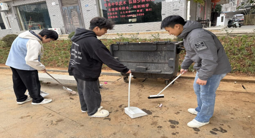 环境美化组的同学们手持扫帚、铲子、垃圾袋等工具,对社区休闲广场、公共绿化带及老旧楼栋楼道展开集中清理。他们细致清扫路面杂物,耐心清除墙面非法小广告,并对卫生死角进行彻底整治。过程中,同学们充分发扬不怕脏、不怕累的精神,相互协作、高效行动,使社区公共环境面貌焕然一新。