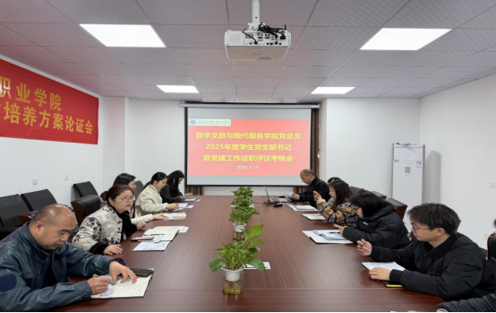 新闻网讯(通讯员 张憬扬)为深入贯彻落实全面从严治党要求,夯实基层党建工作基础,压实党支部书记抓党建第一责任人职责,2026年3月19日,数字文旅与现代服务学院党总支举行学生党支部书记抓2025年度党建工作述职评议考核会。学院党总支委员、学生支部全体党员、群众代表参会,党总支组织委员田纪云主持会议。