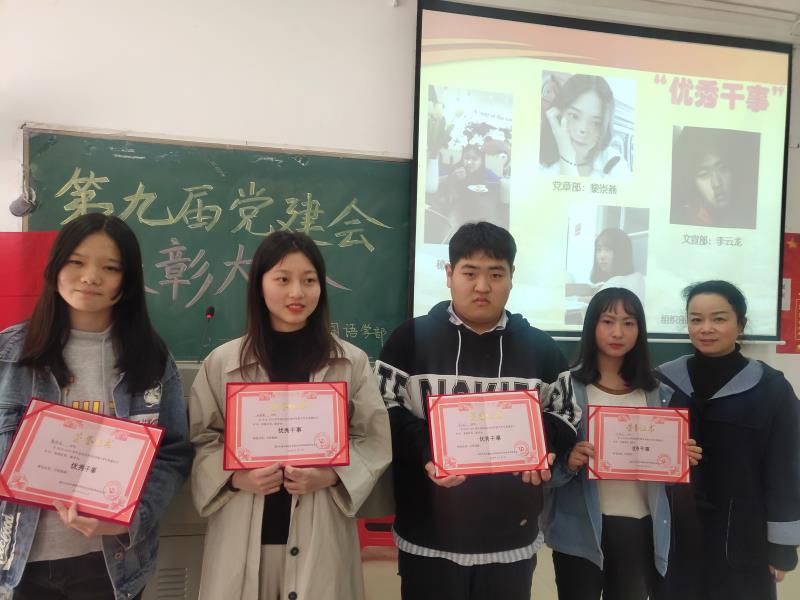 为了更好地总结党建会的各项工作,进一步促进党建会以后工作的开展,2019年3月14日中午12:10分,武汉外语外事职业学院第九届应用外国语学部党建会于南3101教室进行了表彰大会。