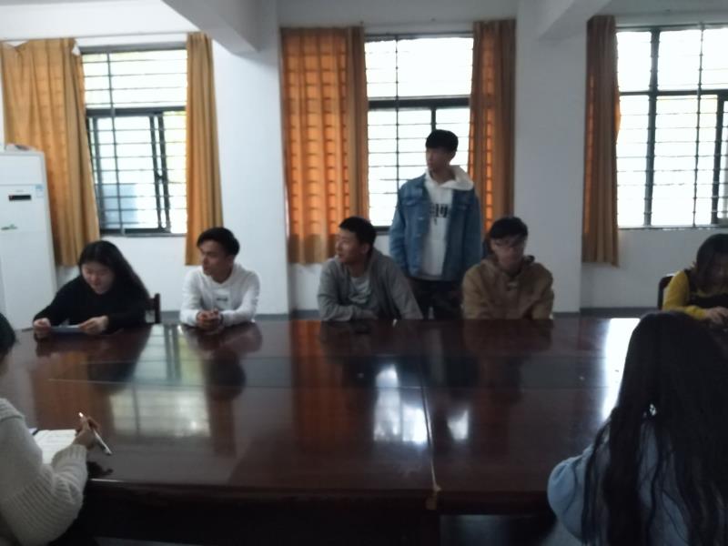 会议最后,各部门报告工作,会长总结说平时交给干事的工作比较少,都是由各部门部长去做的,为的就是缓解干事的压力。但并不等于干事就可以放松,在接下来的工作中,对干事的要求会越来越高,也会加紧对干事的各方面培养,同时关于半月谈的工作,要求部长们安排干事去完成,要求每个干事有事可做,并能做好,最后,会长鼓励我们不要有压力,要在实践中锻炼自己的能力,这也是成为更好的自己。
