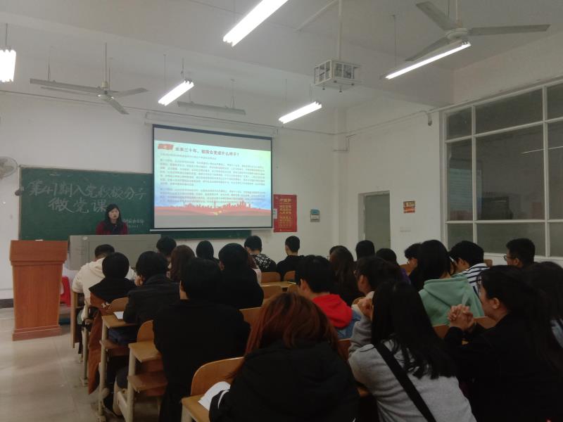 2019年4月10日中午12:30,应用外国语学部第47期入党积极分子在南3101教室参加了第一次“微党课”学习活动。此次微党课由王会娟老师讲授,主题为:奋斗的青春最美丽。入党积极分子们满怀对党的憧憬和热爱以及崇高的敬意来参加此次的学习活动。