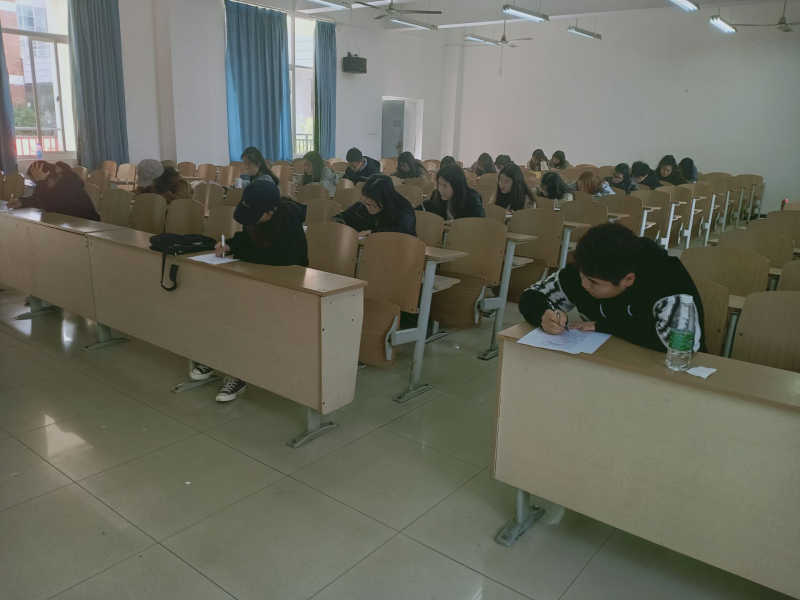 考试开始,四位监考员安静的分发试卷,各位入党积极分子在拿到试卷后都沉着冷静的答题,将党课上学习的内容和自主学习的内容结合在一起,考试过程中,考场内十分安静,只能听到笔在纸上写字的声音和监考员们在考场上走路的声音。