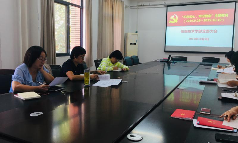 2019年10月9日下午14点30分,信息技术学部在行政楼A333召开“不忘初心、牢记使命”主题教育第一周交流扩大会。会议由学部主任助理兼党总支副书记阮晓娅同志主持,主要学习和交流《习近平关于“不忘初心、牢记使命”论述摘要》的学习心得,以及聆听庆祝新中国70周年重要讲话的感想。