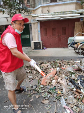 赵胜同志参加社区“清洁家园”活动。