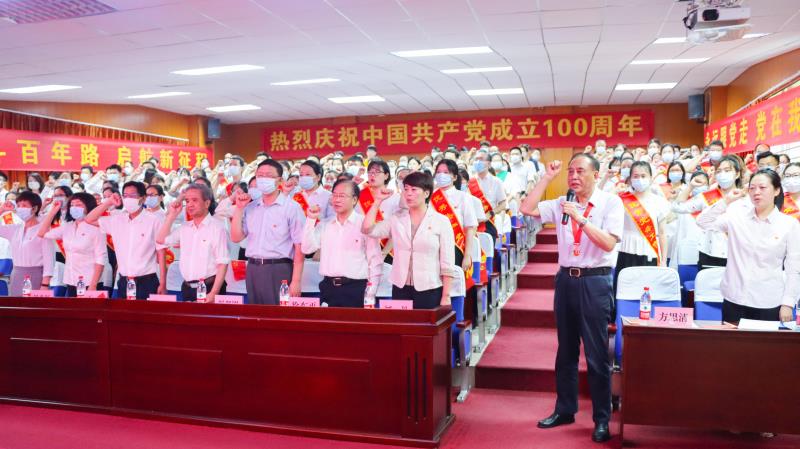 院长陈建勋在大会上作热情洋溢的讲话。他指出,2021年是一个具有非常意义的一年,伟大的中国共产党走过了一百周年的光辉历程!在这个一百年中,历代中国共产党人历尽艰辛,不懈奋斗,不断接力,推翻三座大山,建立新中国,获得真正的民族解放和独立自主;从1949年起,历经革命党到执政党的曲折探索,领导全国人民把一个贫穷落后一盘散沙的旧中国建设成为当今的世界大国强国;中国共产党为人民谋幸福、为中华民族谋复兴的初心和使命是激励了一代代优秀的共产党人不断前进的根本动力。我们党取得的卓越成绩,依靠的是我们千千万万党员对国家和人民的热爱,依靠的是我们普通党员坚守在自己的工作岗位上日复一日、年复一年的不断付出。
