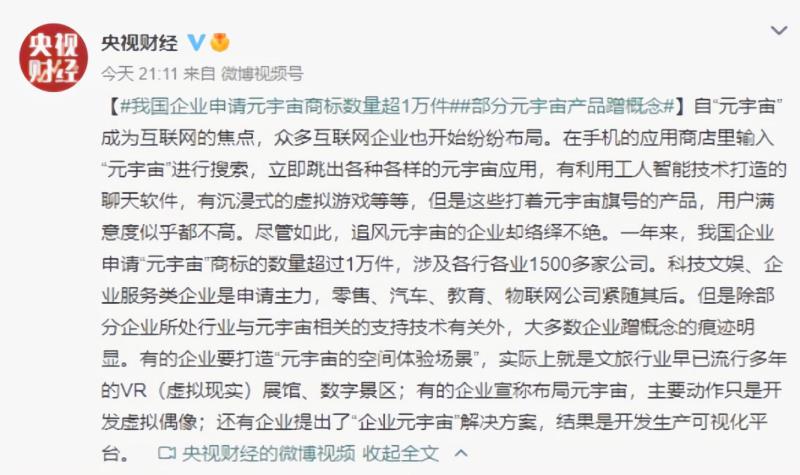 7.4月17日,我国企业申请元宇宙商标数量超1万件,部分元宇宙产品蹭概念。