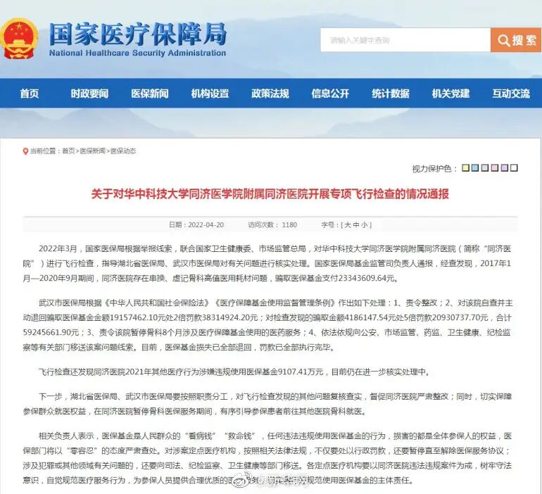 24.4月20日,违规使用并骗取医保基金,华科大同济医院被罚5900余万元。