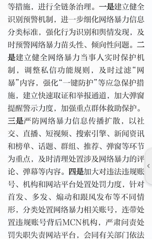 10.4月24日中央网信办部署开展“清朗·网络暴力专项治理行动”,为有效防范和解决网络暴力问题,切实保障广大网民合法权益,要求网站平台认真抓好集中治理,建立健全长效机制,确保治理工作取得扎实成效。