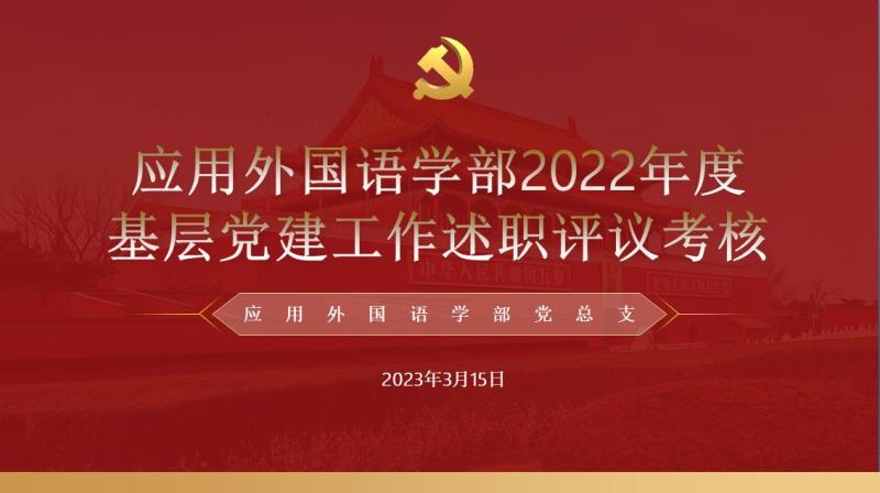 根据学院《关于开展2022年度党组织书记抓基层党建工作述职评议考核的通知》文件精神,3月15日中午,应用外国语学部党委通过腾讯会议线上方式,开展2022年度党支部书记抓基层党建工作述职评议考核。学部全体教职工党员参加会议,会议由学部党总支副书记胡蓉主持。