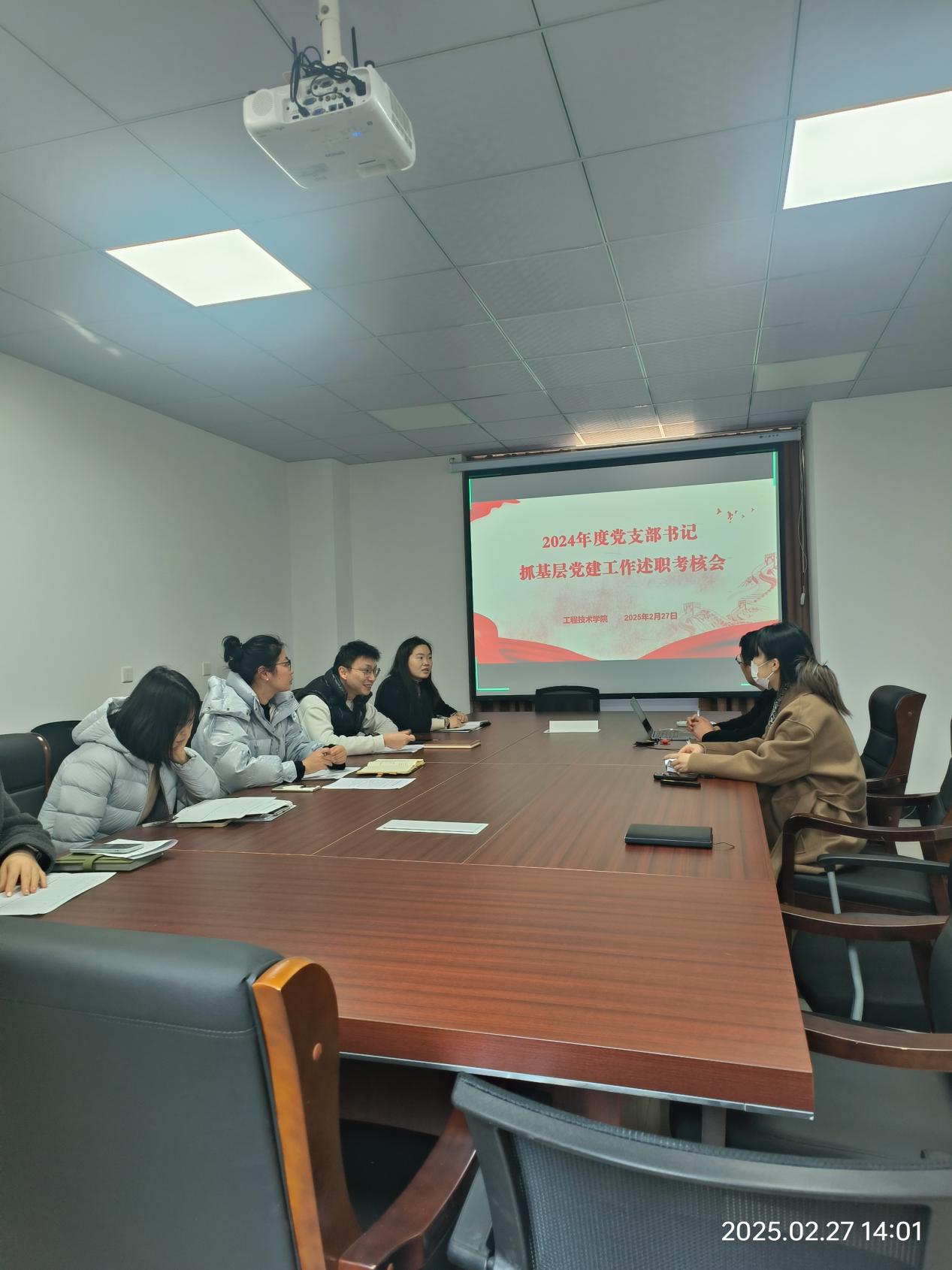 (通讯员 熊凯峰、杨维)2月27日下午14:00,工程技术学院党总支2024年度党支部书记抓党建工作述职评议考核会在办公楼302会议室召开。此次会议积极响应学校《关于开展2024年度党组织书记抓基层党建工作述职评议考核的通知》文件要求而开展。党总支书记熊祖钊、副书记杨佩、党务秘书杨维、教工党支部书记曾庆红、学生党支部书记许佳媛以及各支部委员参加了会议,会议由杨维老师主持。