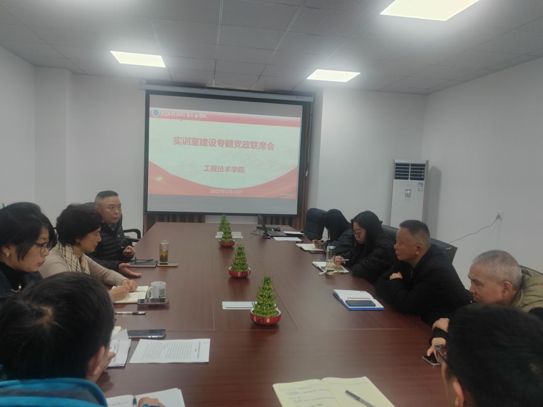 (通讯员 杨维)3月13日中午12:00,工程技术学院在办公楼302会议室召开实验室建设专题党政联席会。本次会议由院长熊祖钊主持,教学副院长夏丽君、副书记杨佩、实验室主任王水兵以及各系主任齐聚一堂,共同围绕学院实验室建设展开深入讨论与交流。